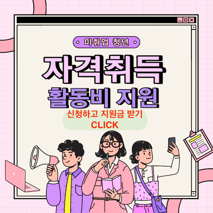 - 지원내용 : 시험 응시료 1인당 최대 10만원 개인별 계좌로 실비지원 (매월 말일 지급)